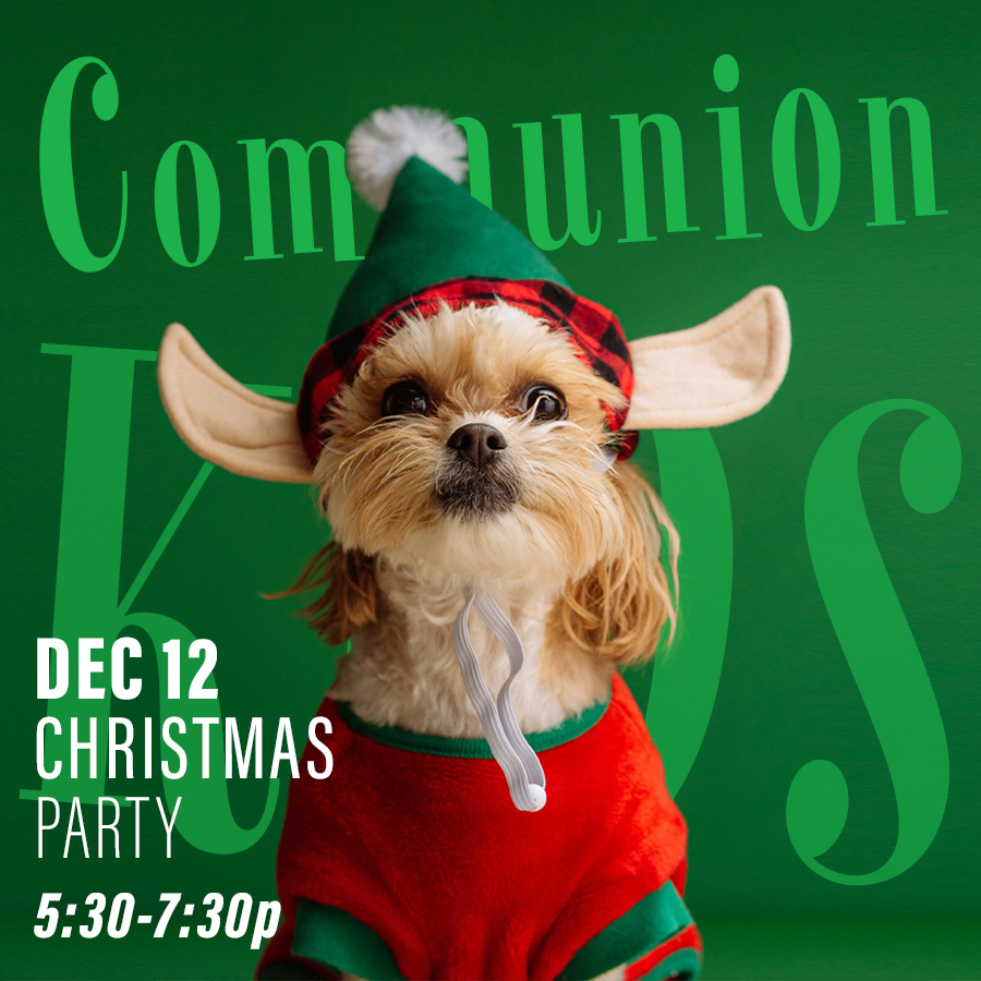 The CommunionKIDS Christmas Pageant will be held on Christmas Eve at 6p. Rehearsals start on October 19 at 10:15a — or directly after 1st service — in the Fireside Room. This is open to all ages. Email Shawna Borgman to sign up! Possible schedule changes as we near Christmas Eve, connect with Shawna for details on specific meets.