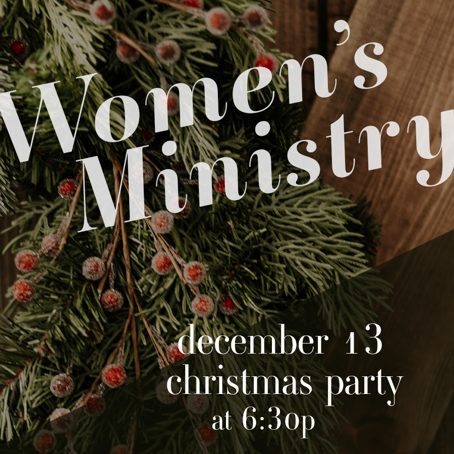 Please join the women of Communion Church for our annual Christmas Party on Friday December 13 at 6:30p at church. We will be wrapping our donation gifts. Please bring an appetizer or dessert to share. Friends and high-school-age daughters are welcome!