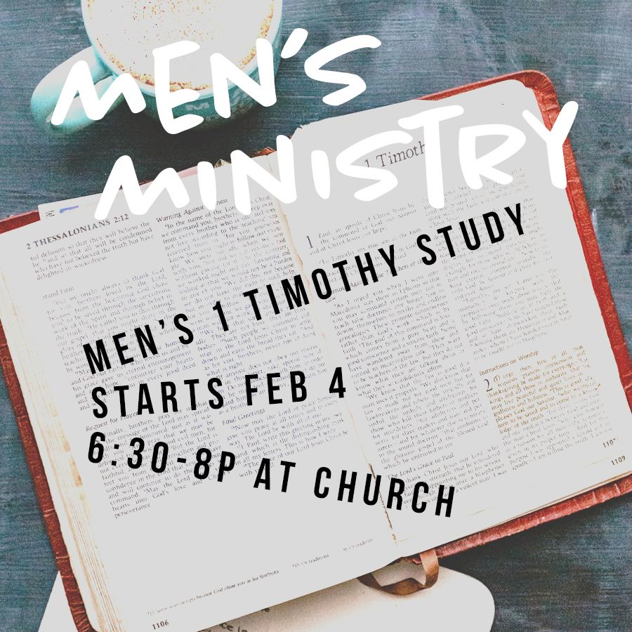 Beginning Wednesday February 4, the men of Communion Church will be starting a six-week study on the book of 1 Timothy — skipping February 25. There’s no cost and a free study journal will be given to the first 20 men to come! Each week we will study one chapter together, with a teaching and a discussion time. We will start at 6:30p and wrap up by 8p each night.