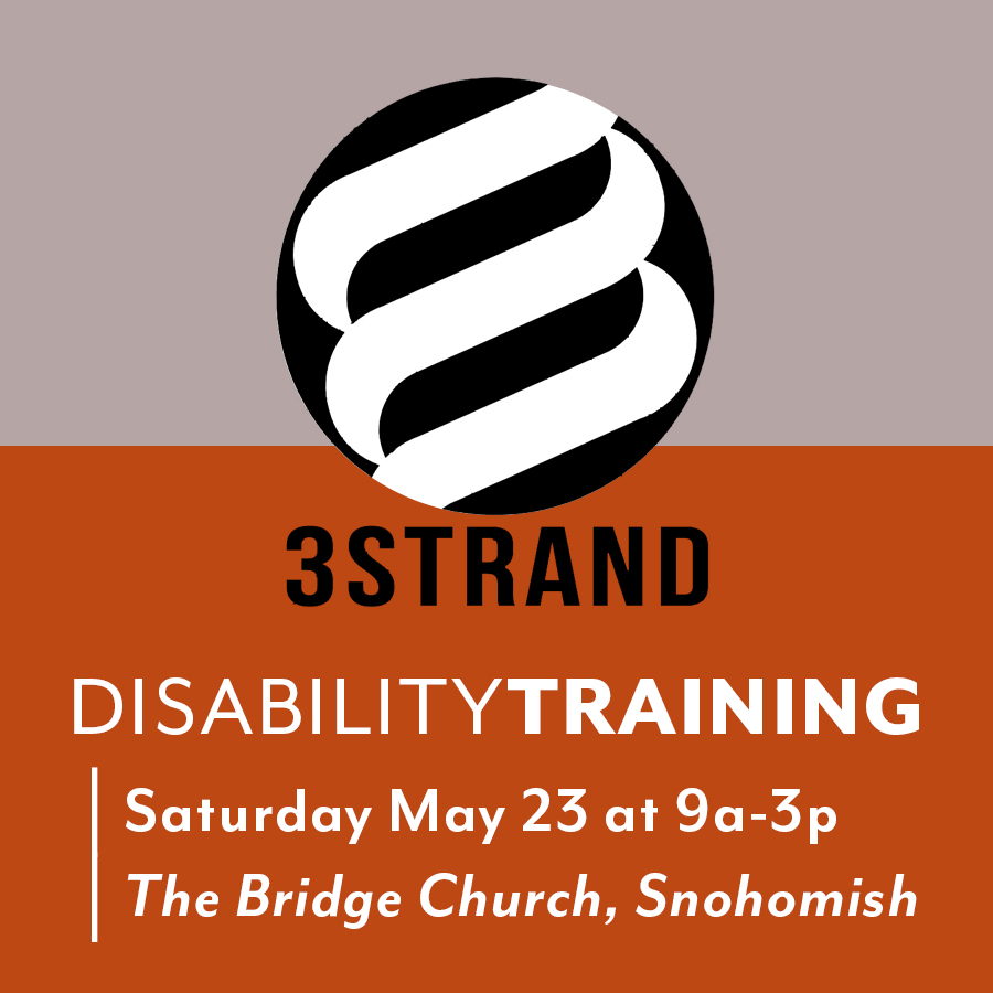 3Strand is offering a disability training on Saturday May 23 from 9a-3p at The Bridge Church in Snohomish. We are partnering with Joni & Friends, Hope Counseling and Guidelight. This is a free event. Lunch provided, so please register so we can plan accordingly. Find more details and register via link below, or contact Pastor Jim with any questions.